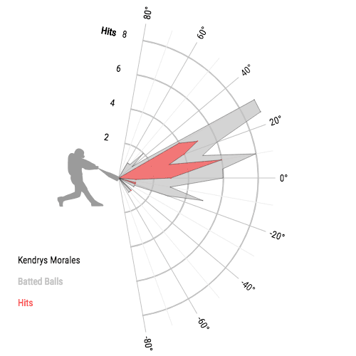 Morales, a less-than-agile DH, couldn’t consistently hit the ball in the air to save his life, and his production was suffering. His ground ball rate, which was in the 44% range between his two years in Kansas City, went all the way up to 48.4%