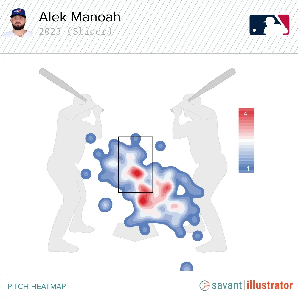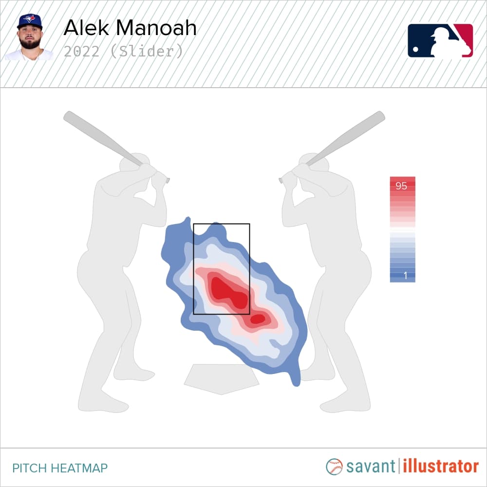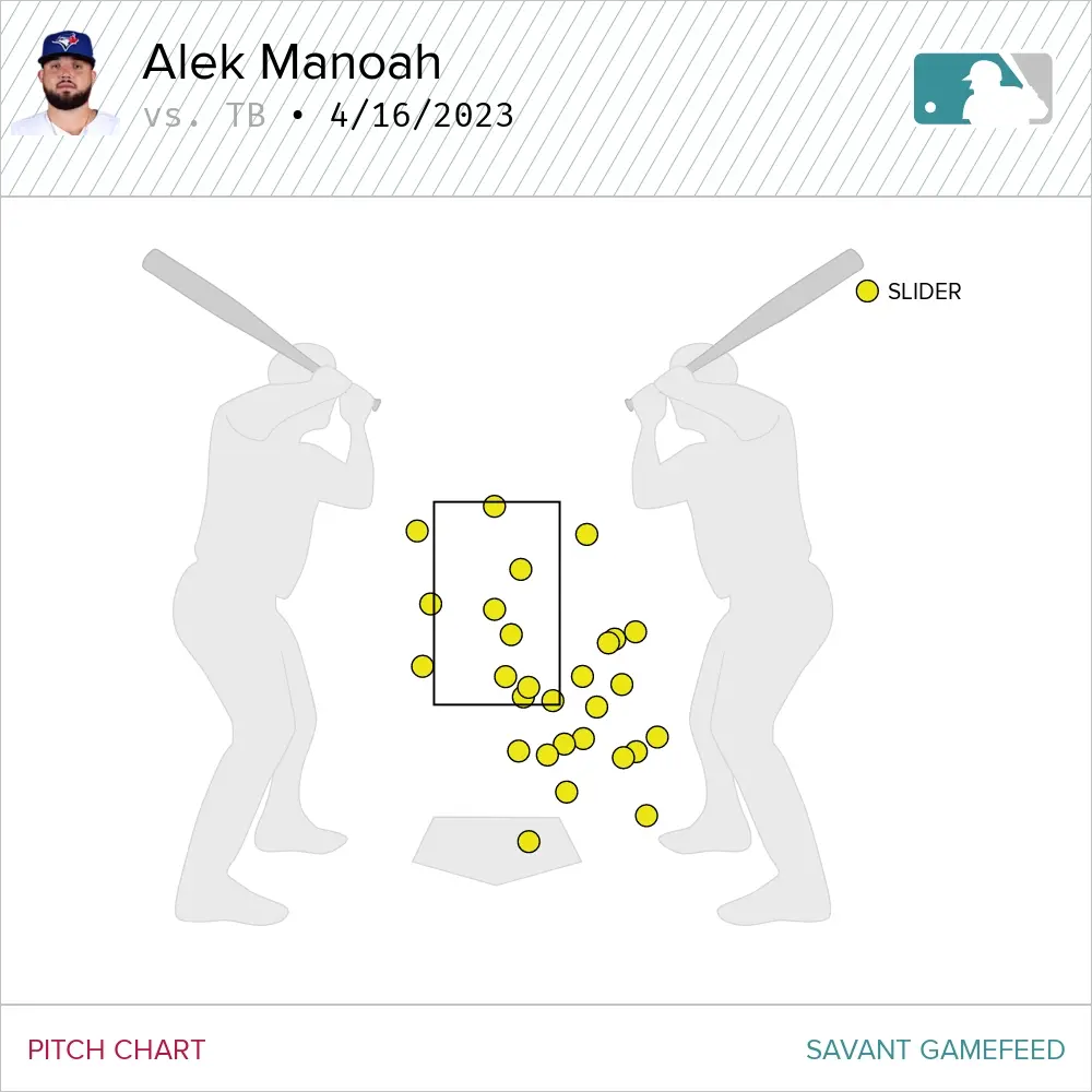 Manoah is trying to address this concern by increasing his output of in-zone sliders, and understandably so. So far, however, his efforts have been met with disappointment. Until fewer breaking balls miss glove side, the dire situation likely won’t improve anytime soon.
