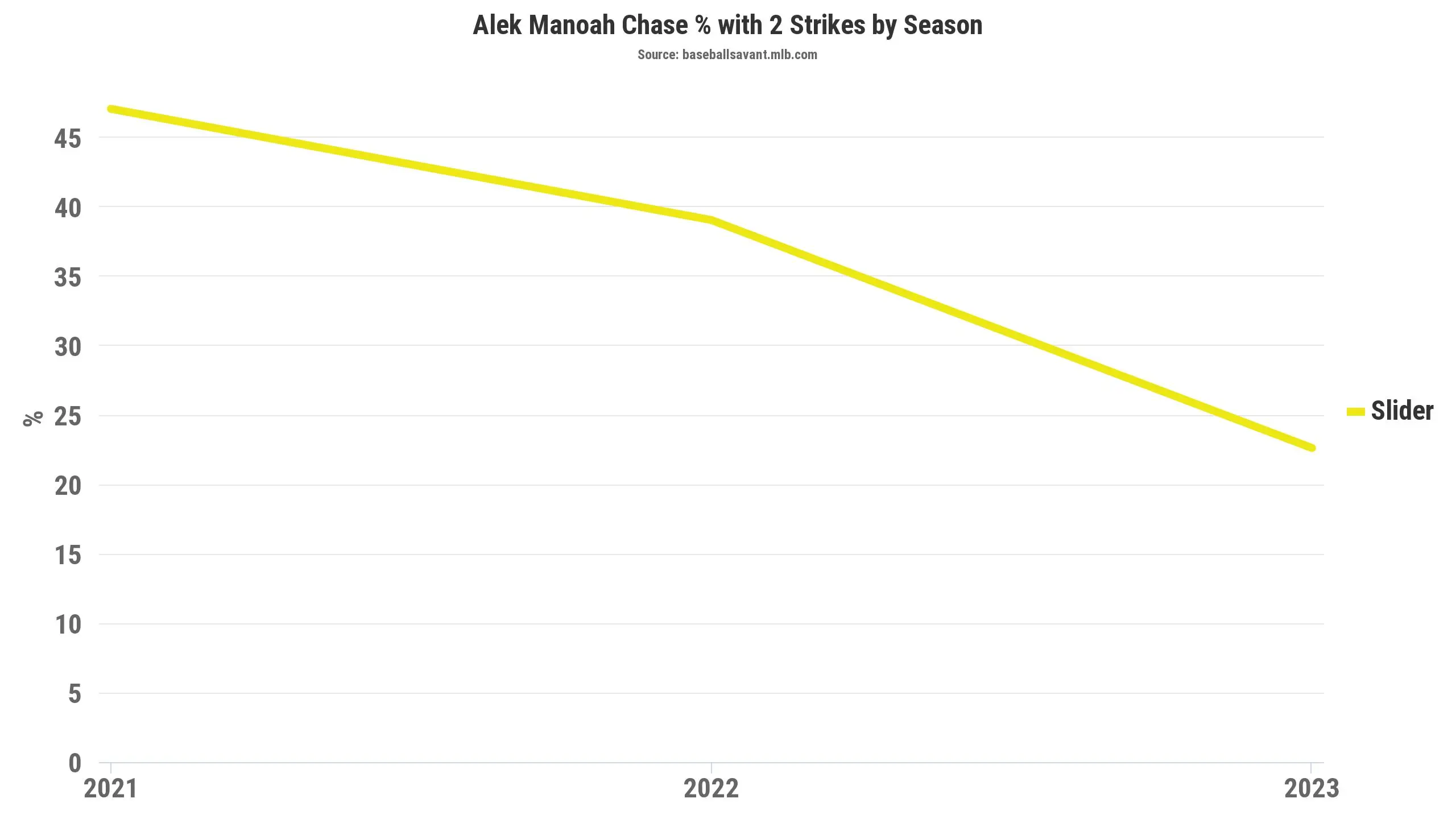 A trend that is even more troubling, though, is the young right-hander’s slider has progressively worsened since his MLB debut in 2021. It was a plus offering during his rookie season, but since then, it has rapidly declined from a performance and makeup standpoint.