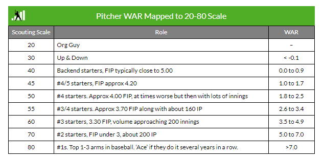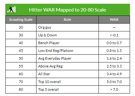 There are a few explanatory notes. First, BA uses the 20-80 Scouting Scale. Accordingly, the tool grades scale and the overall grading system for hitters and pitchers are below.