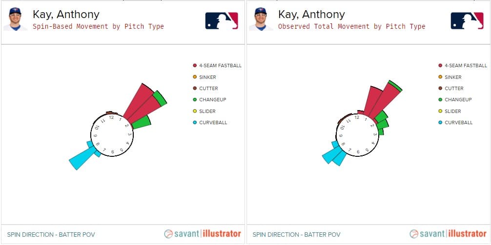 Kay’s curveball spin based movement is 7:30 and it mirrors perfectly with his fastball.