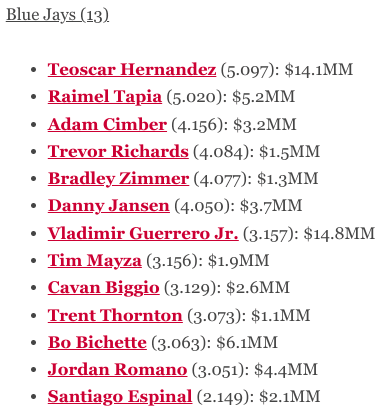 If the Blue Jays were to take that route, along with non-tendering Zimmer and Thornton, they’d save $7.6 million for next season. With a CBT payroll of $151.419 million, that would add $56.8 million to the books, raising their total to $208.219 million. It’d be the first time in franchise history that their CBT payroll exceeded the $200 million threshold, and that’s before factoring in pre-arbitration salaries.