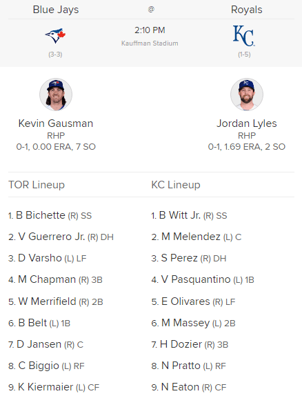 Toronto once again shouldn’t have many issues in the way of getting to their opposing pitcher as while Jordan Lyles showed well in his first start of the year, he’s coming off a brutal year with the Baltimore Orioles. The Jays know him well having seen him last year, so let’s see if the bats can heat up this afternoon in a little matinee action.