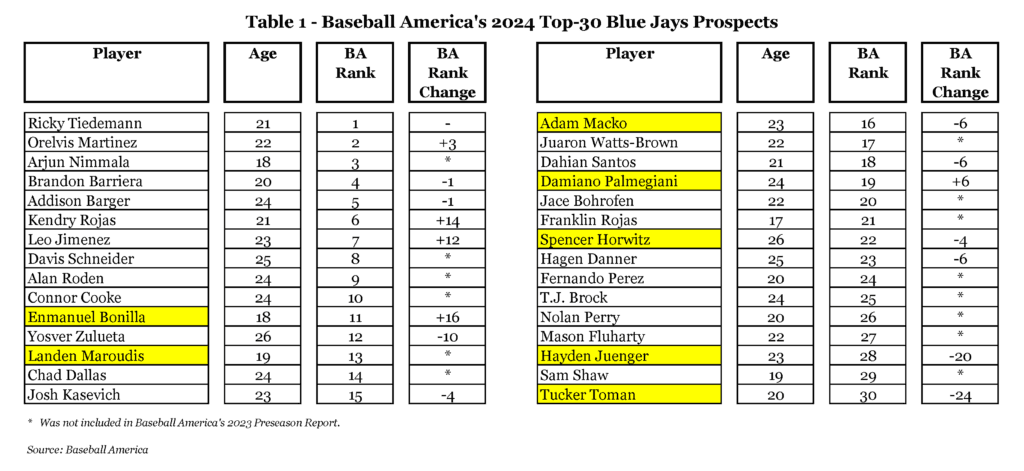 On January 24, Baseball America (subscription required) published its Top 30 Prospects for all MLB teams, including the Toronto Blue Jays.