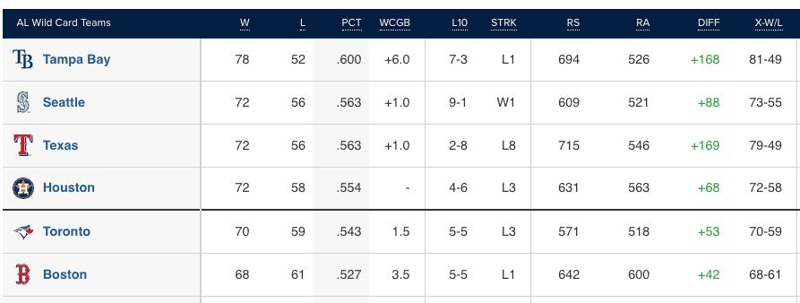 Texas has become the team to watch for the Blue Jays. Not only are they imploding right now, but they play a four-game set in Toronto in mid-September. That could be a huge head-to-head in the standings.