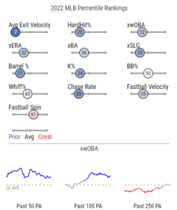 While I’m not a fan of Baseball Savant’s percentiles without explanations, I think it is fitting to put Ray’s graph below.