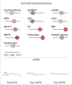 There were concerns about his splitter last season, but he’s been proving us wrong in 2022, as he has a whiff% of 46.9% on those splits.
