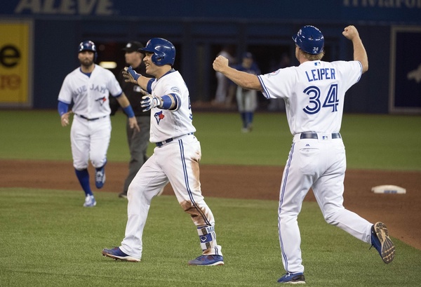 Well that felt pretty damn good — and was just sitting on my couch watching it! I can only imagine what it must feel like for Russell Martin, who, in the bottom of the ninth, stung a ball to deep right field that cashed the winning run for a second straight Blue Jays walk-off victory.