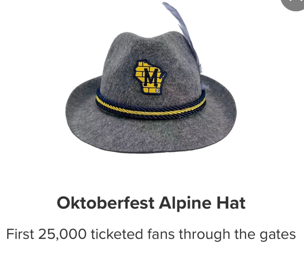 Oktoberfest Alpine Hat (Milwaukee Brewers) – Saturday, September 12