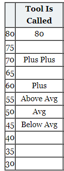 There are a few explanatory notes. First, BA uses the 20-80 Scouting Scale. Accordingly, the tool grades scale and the overall grading system for hitters and pitchers are below.