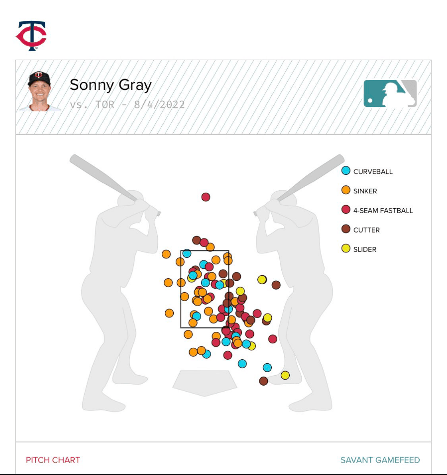 Sonny Gray got the start for Minnesota, and, although his numbers were very good, those who watched the game could see that Gray did whatever he could to throw pitches on the outside parts of the zone. Gray finished the night with five walks in five innings. 46 of his 96 pitches were balls. He did paint some corners nicely, but it was frustrating watching the Jays only tally one hit off of him due to Gray throwing several borderline pitches.