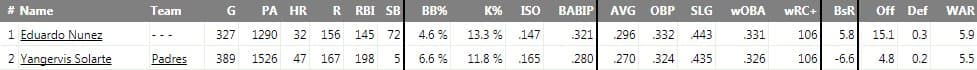 Also of note here: while Nuñez is a right-handed batter, Solarte is a switch hitter, and was significantly better in 2017 as a lefty (108 wRC+ versus 54) — as he has been in every year of his career, save for his rookie season of 2014. (He’s not usually been as bad from the right side, it should be noted. But more importantly: this is a roster that needed some extra balance, and he give them a touch of that, at the very least. Hell, there’s a chance he steals some DH at-bats against right-handers from Kendrys).