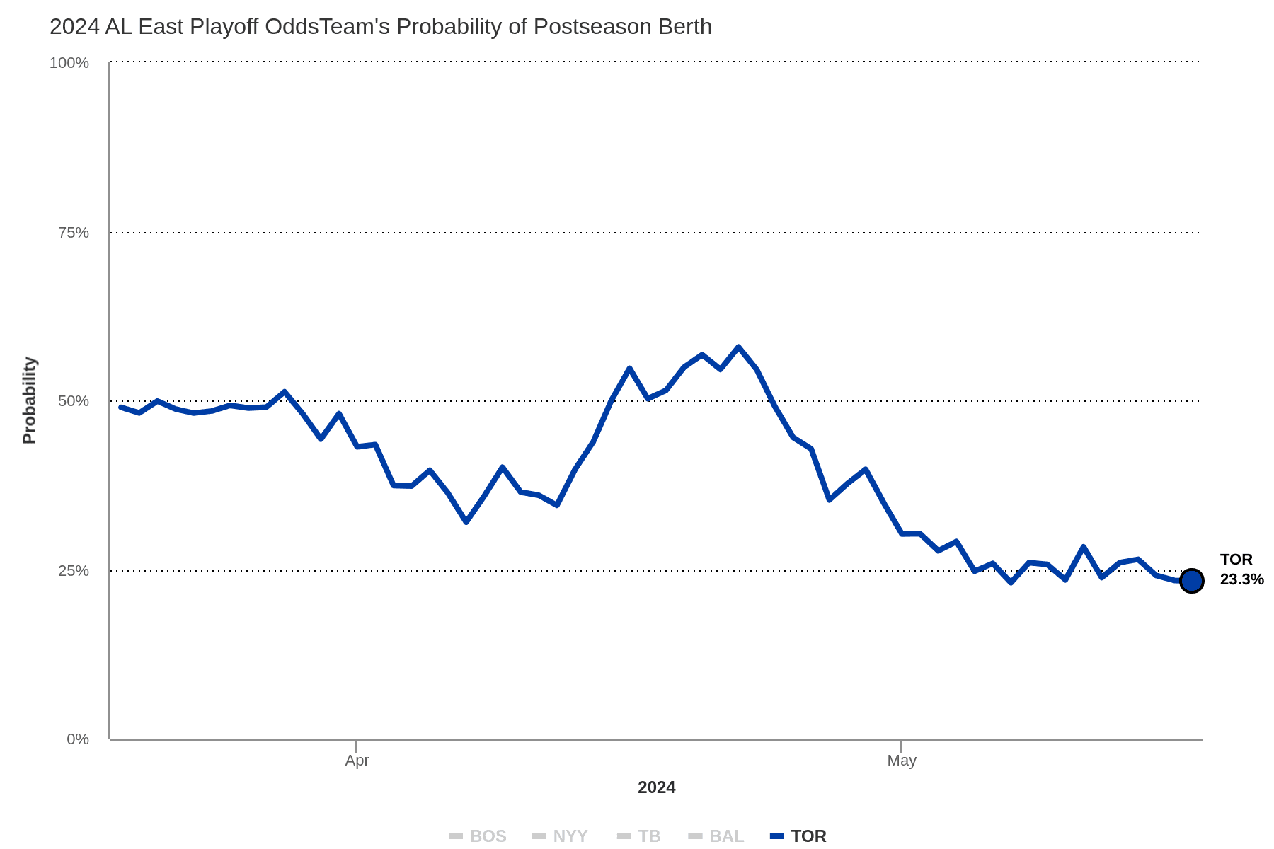 Nearly a month has passed since the franchise’s last series victory against the San Diego Padres on April 20. Since that series concluded, they’ve lost 13 of their previous 20 games, causing their playoff odds to fall to 23.3 per cent per FanGraphs entering Friday’s slate — the second-lowest odds in the AL East.