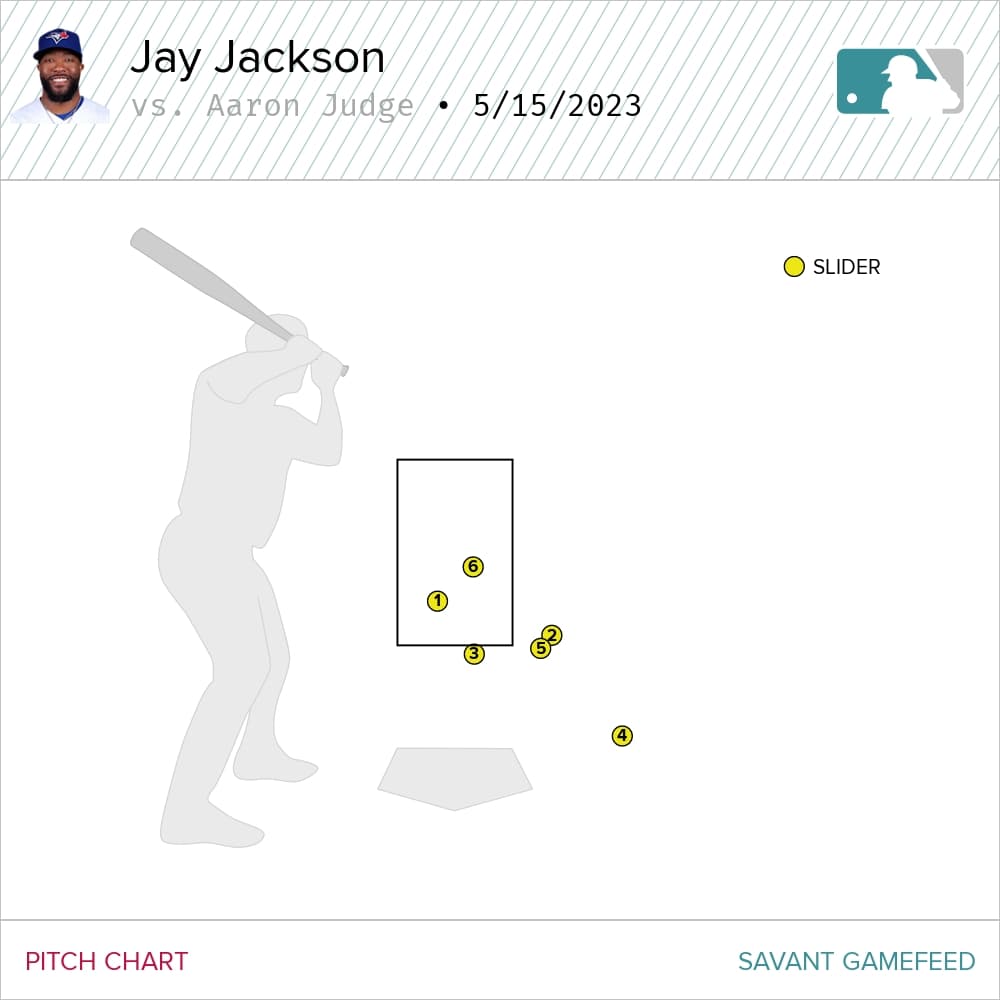 Jackson threw Judge six straight sliders, with his final one missing over the heart of the plate – to a slugger who’s hitting .333 AVG and 1.000 SLG versus sliders this season – which No. 99 blasted 462 feet to centre field.