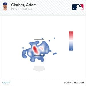 Since Cimber releases the ball from such a low point his fastball is like a rise ball. Cimber throws that pitch up to lefties really attacking the upper third of the strike zone.