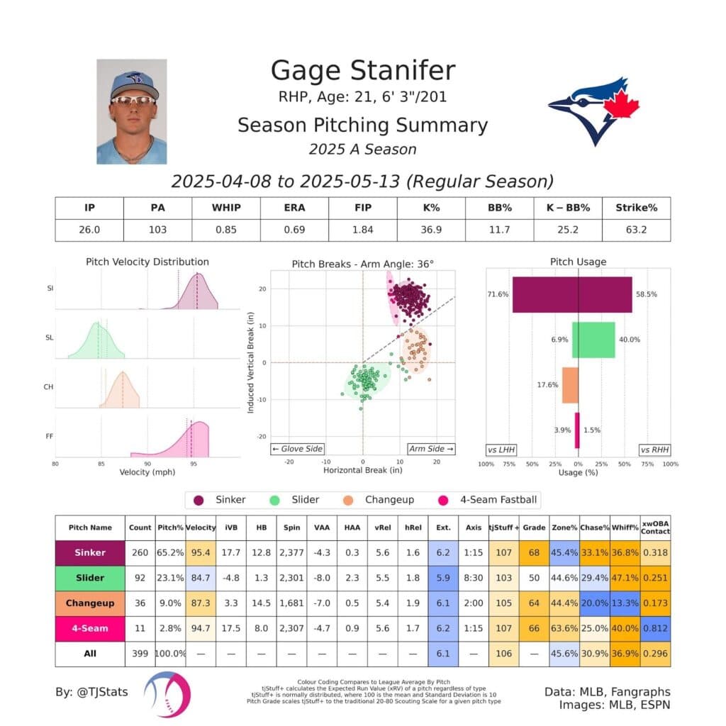 Stanifer’s dominant 2025 has put him firmly on the radar of not only the Blue Jays’ brass but also fans.