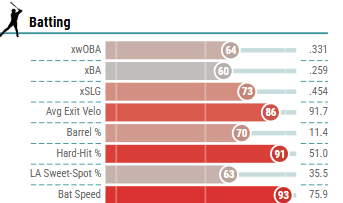 When you factor all of this in context with the fact that Barger also produces 93rd percentile bat speed and 63rd percentile Sweet-Spot rate (meaning he hits the ball at ideal angles), then you have all the ingredients of a potentially elite power bat. Barger also rebounded from a brutal end to the season and had one of the best postseason runs by a hitter in a long time.