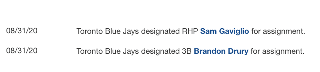 Brandon Drury and Sam Gaviglio have been designated for assignment