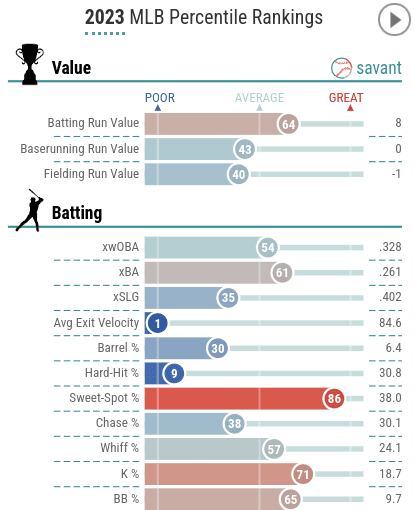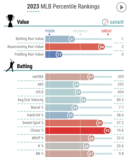 And, as displayed by India’s 2023 Baseball Savant card, the only areas he thrived in during his third big-league campaign were controlling the strike zone and running the bases.