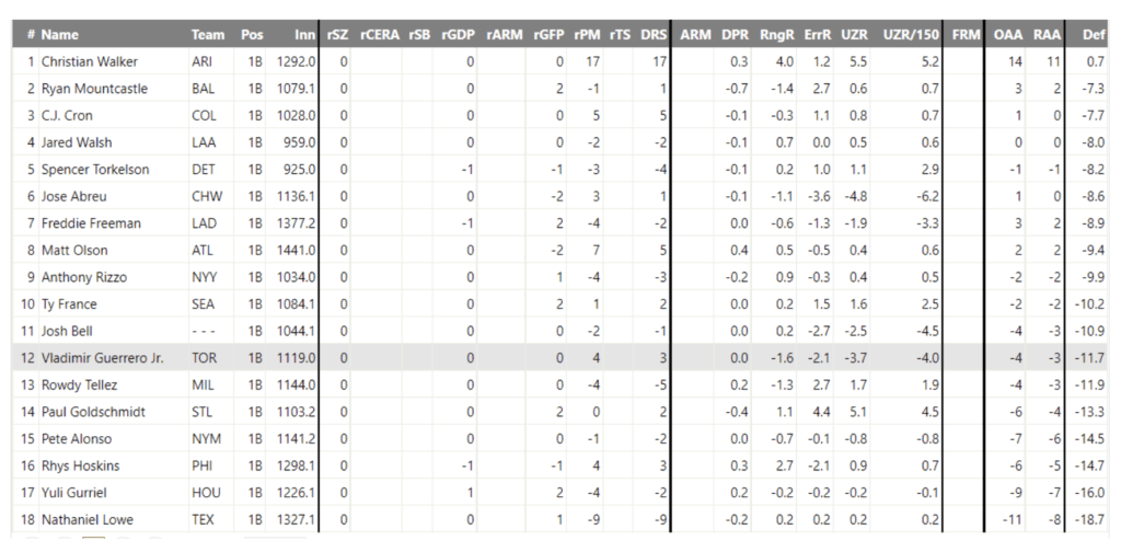 Another positive development from Vladdy would be his defense. Not enough has been said about the improvements he has made this year on that side of the diamond. This year, he ranked 12th of qualified first basemen in terms of defensive WAR, according to FanGraphs.