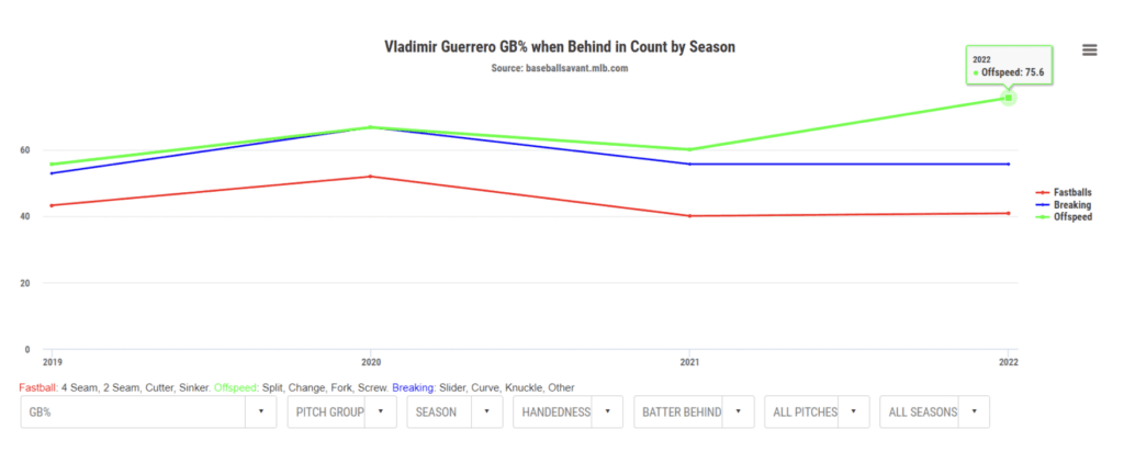 Vladdy had a fantastic all-word 2021 season, he is the next great generational hitter… BUT! He had a 52% groundball rate in 2022.