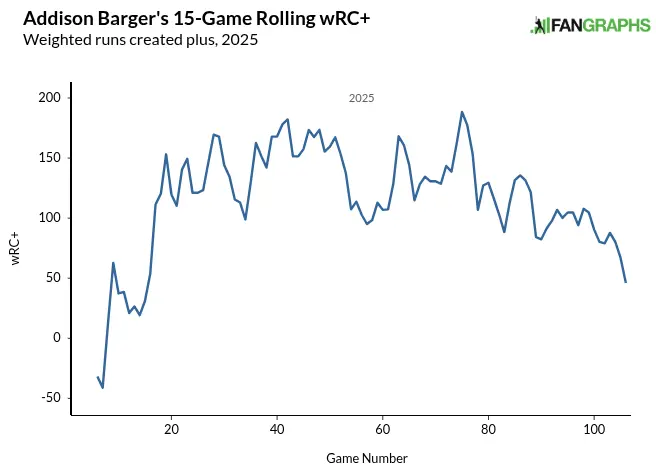 A few things, really. However, they all gravitate toward one common theme — the sport has adjusted to Addison Barger and his pull-heavy approach.