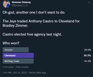 On Saturday, we looked at the 19 trades since the Mark Shapiro era started that was considered a win by voters on Twitter. Today, we’ll look at the “losses”