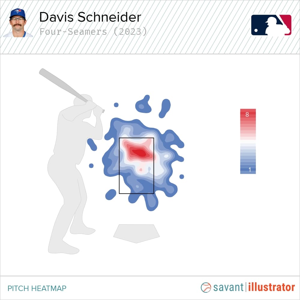 As you probably already guessed, Schneider’s results against four-seamers, sinkers and cutters have nosedived recently, as evidenced by his .115/.226/.231 slash line, 33.3-per-cent hard-hit rate and -3 run value. But, of course, this isn’t his first rodeo.