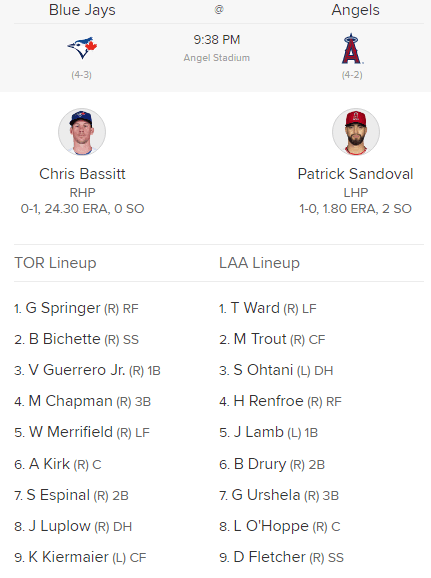 Now it’s Chris Bassit’s turn to have a chance to reset as he gets the mound tonight as the Jays pay visit to Shohei Ohtani’s LA Angels. Bassit got lit up by the Cards in his Blue Jays debut posting a 3.1 IP, 10 H, 9 ER, 0 BB, 0 K, and 4 HR line. His first two pitches went for home runs and so did his sixth. By the end of the 1st, the Jays were already down 4-0 and the night didn’t get a whole lot easier from there.