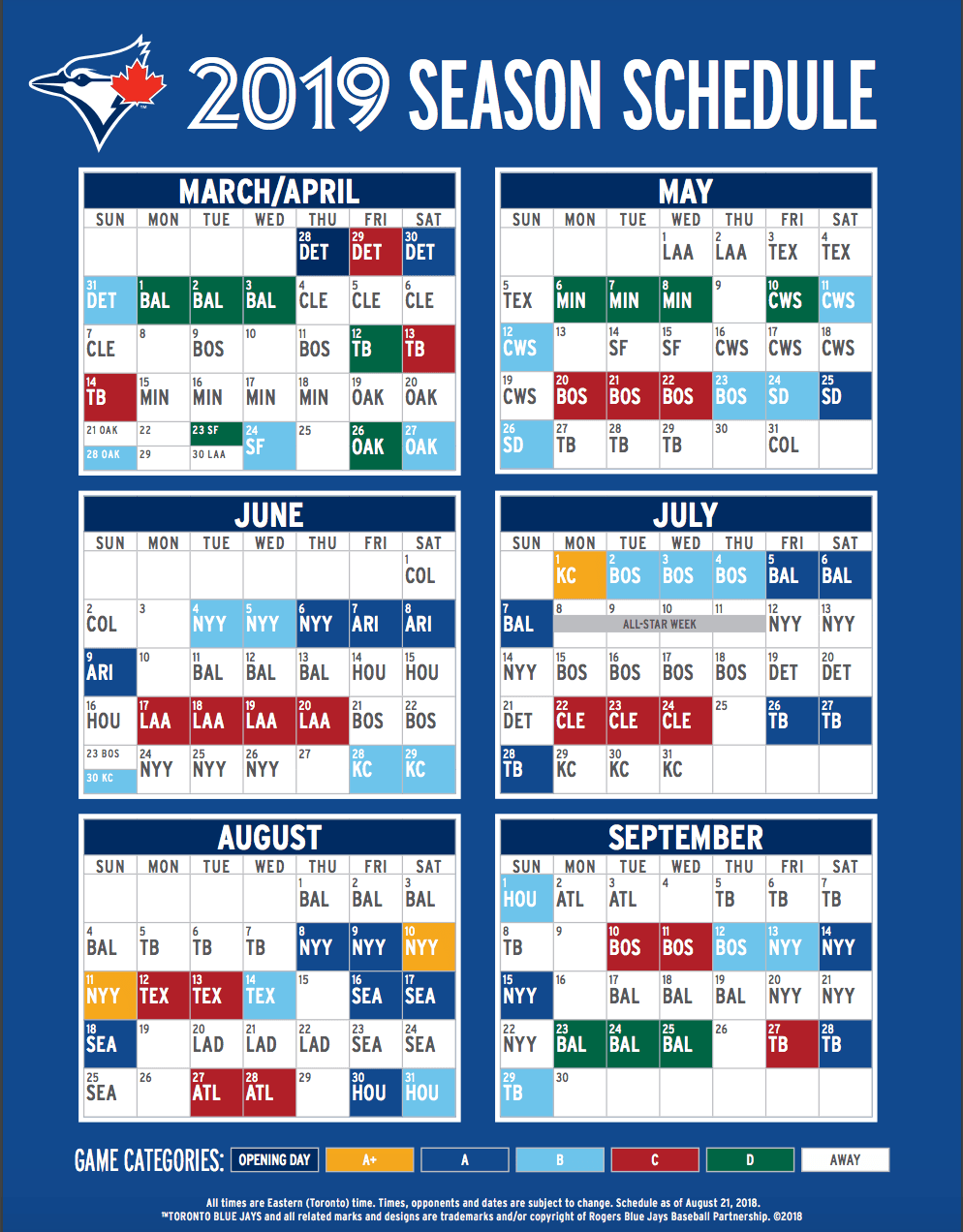 The Blue Jays have released their 2019 schedule.
