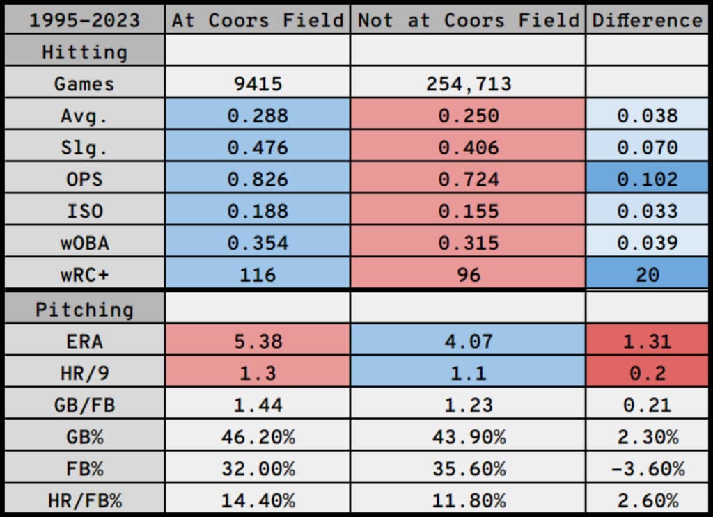 Coors Field has built a reputation around baseball for being the league’s most hitter-friendly park since it opened in 1995. That elevation causes the ball to travel through the air easier allowing longer hits. For power hitters, this is their dream. For pitchers, however, it’s their nightmare as that thin air causes breaking balls to break less, offering hitters meatballs at a much higher rate.