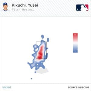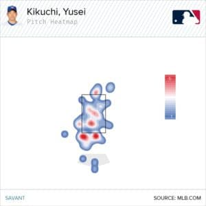 On the left we have a pitcher who is trying to work the edges with a slow slider, making sure to keep the ball down. On the right, we have the much harder slider that is still being thrown down but not with the same avoidance of the middle of the plate. Kikuchi doesn’t have to be afraid to throw strikes, even when batters hit this pitch it’s not leading to loud contact.
