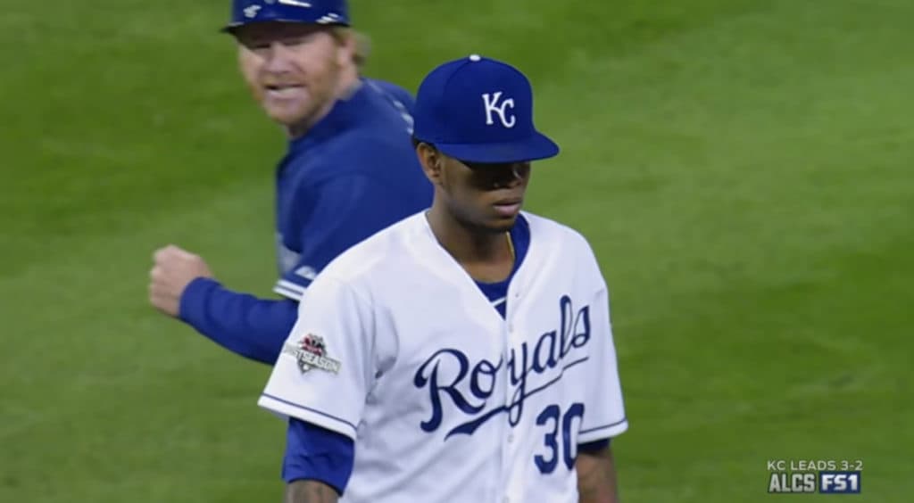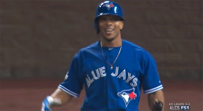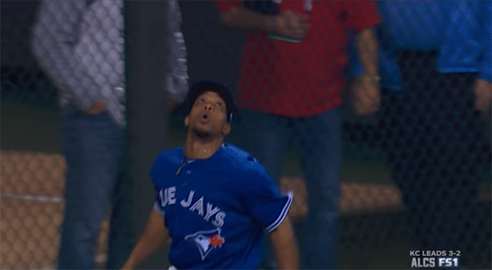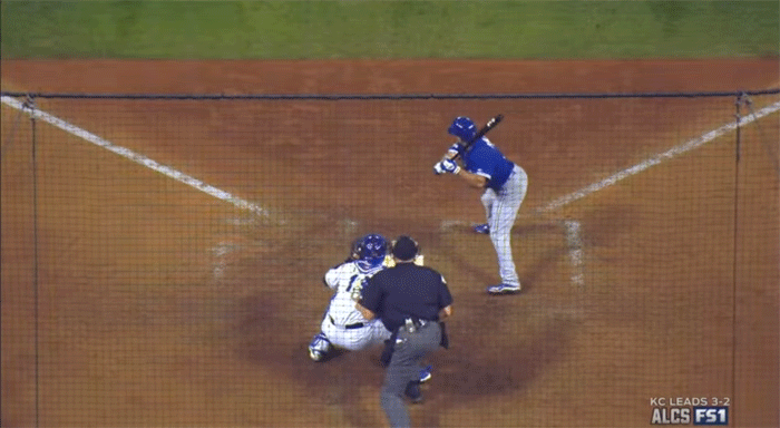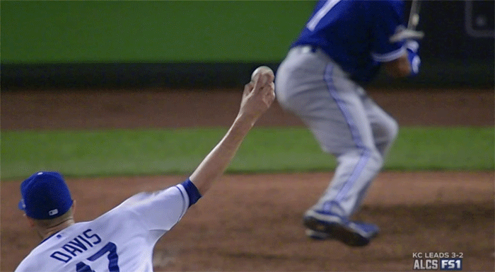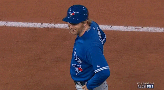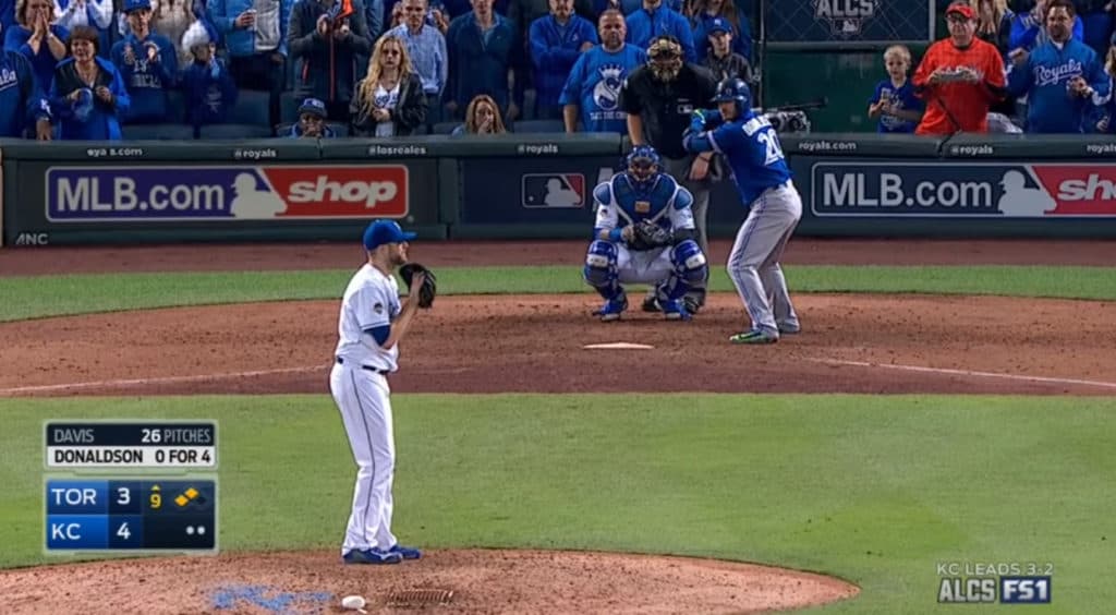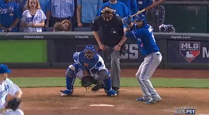 The Blue Jays’ closer tried to put away Lorenzo Cain with a 3-2 slider, but walked him. This set the stage for the turning point in this game. Eric Hosmer hits a ball into right field, and thanks in part to the Royals’ advanced scouting, they exposed Bautista’s throwing tendencies and Cain went-first-to-home.
