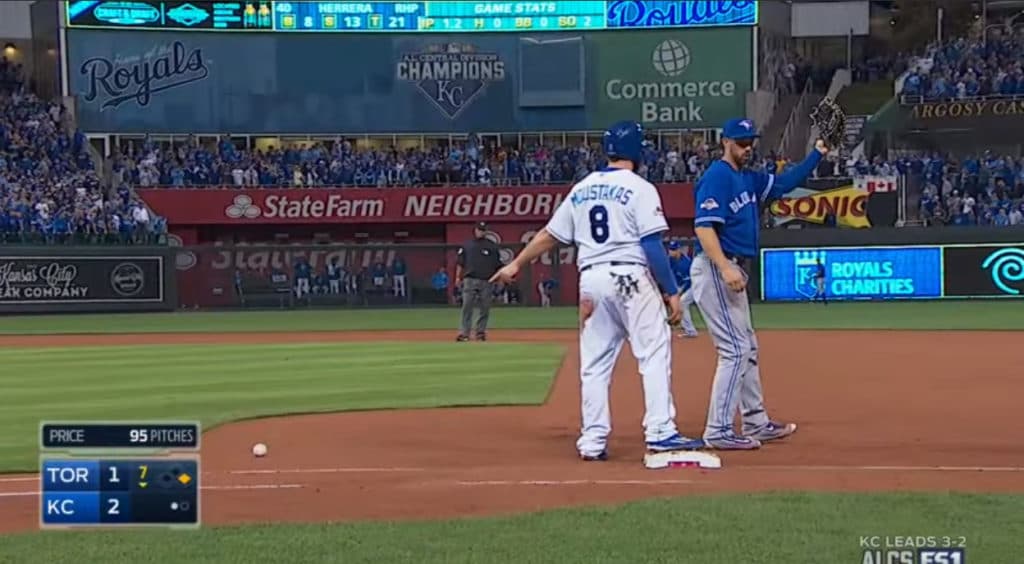 Until this point in the game, David Price walked the tightrope, but somehow kept the Royals at bay. John Gibbons goes to Aaron Sanchez, who gives up a single to Alex Rios. Alcides Escobar also singles (who else) and the Royals take a 3-1 lead.