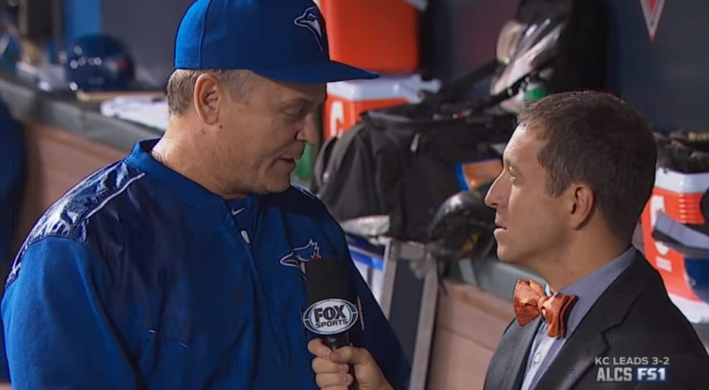 Typically, there’s something that irks me about the in-game interviews with managers, but this one between Gibby and Ken Rosenthal is an exception. Rosenthal is covered by the dugout, but Gibbons has one shoulder out in the open fielding questions.