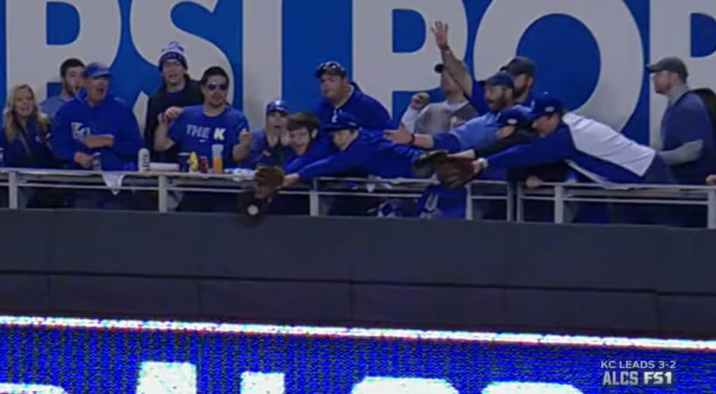 This was the home run from hell for Blue Jays fans. Everyone remembers the home run by Mike Moustakas which narrowly scraped over the right field fence … if not for the help of Mose Schrute in the stands.