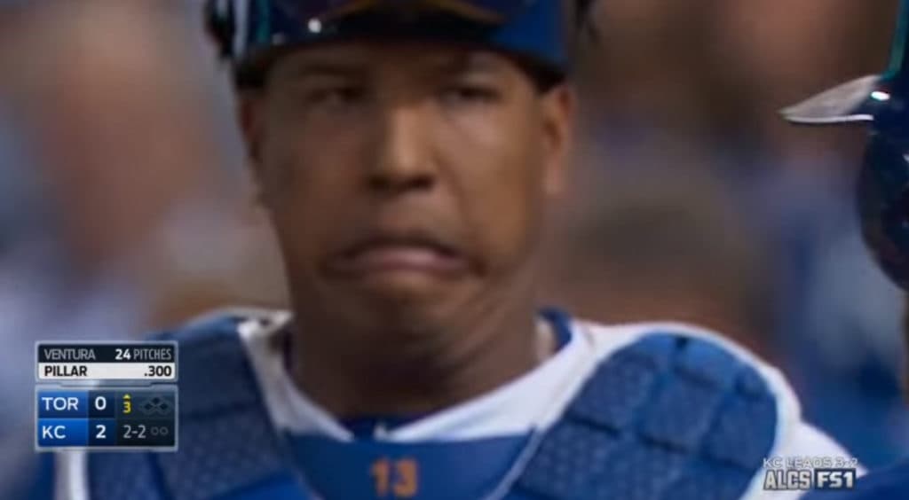 That’s the face Salvador Perez after Kevin Pillar missed a home right to left field by mere feet.