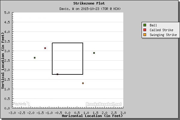 Dioner Navarro comes in as a pinch hitter and the Blue Jays’ win probability elevates to 55 percent. With their season on the line, the Blue Jays have Navarro, Revere and Donaldson due up to face Davis. Navarro and Revere had the lowest and fourth-lowest strikeout rates among Blue Jays hitters, so if ever there were two hitters who could avoid striking out, it was them.