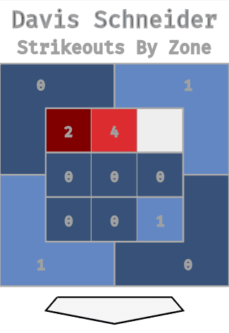 Schneider has struggled to catch up to high heaters thus far, leading to his increased swing-and-miss total as of late, with six of his last seven punchouts coming against that pitch type and location.