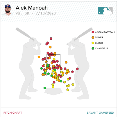 Manoah’s first inning dragged along because he got multiple hitters to two-strike counts but wasn’t able to finish them off. He had a scoreless second frame against the bottom of San Diego’s lineup but struggled again in the third when Fernando Tatis Jr., Juan Soto, and Manny Machado came up to the plate for a second time. He was pulled after allowing two batters to reach in the fourth inning.