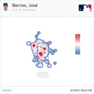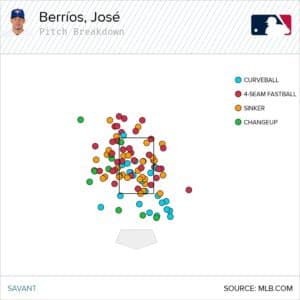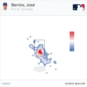 That far from where Berríos wants that pitch. That is too many sinkers over the middle of the plate, and the ones that were inside were up, and therefore not likely to be chased.