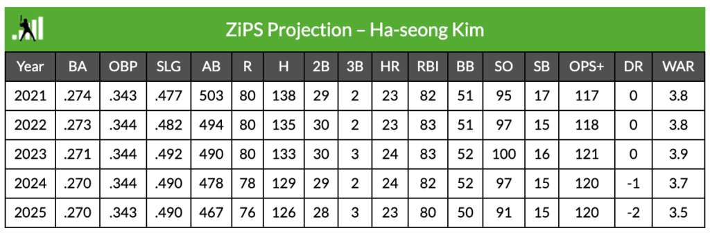 Circling back to Szymborski’s post at FanGraphs, Kim’s projected numbers according to ZiPS based on his production in the KBO are pretty damn lofty. Szymborski’s projections have Kim being worth somewhere between 3.5 and 3.8 wins above replacement over the next five years.