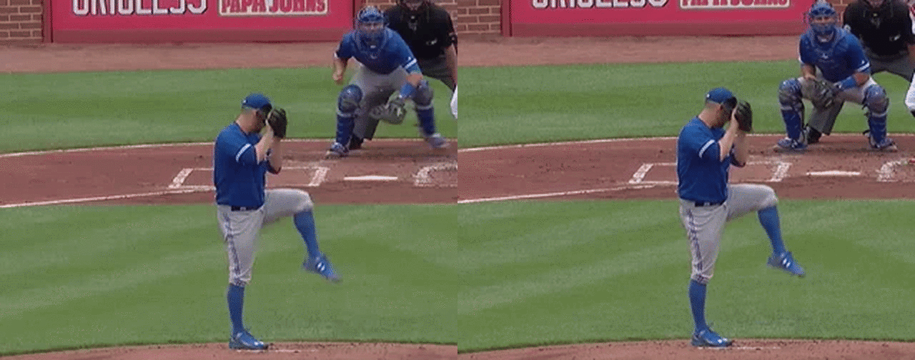 I’ve slowed this down to .25 speed and I still can’t see much of a difference. Just looking at the windup, it looks pretty much identical. However, the pitches couldn’t be more different. Both resulted in strikeouts, both swinging, but were 13 MPH apart. And that’s why Marco Estrada is a magician. Like he said in the video, the average hitter can’t tell that apart at game speed. That, in a nutshell, is why Estrada has been good for Toronto since the trade. Even if he doesn’t strike you out, that dreaded fastball-change mix will make you produce a weak popup. Hell, I’ve watched those gifs about 50 times. If you try to actively notice something like that while facing him, before you get an idea on which pitch you’re getting, the umpire is probably telling you to get out of the batter’s box and back into the dugout.