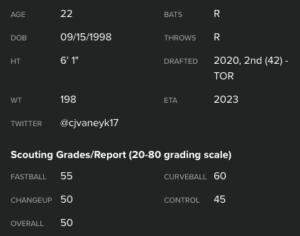 Van Eyk is currently ranked as the Jays’ #11 best prospect by MLB.com and will try to start to put it all together in 2021.