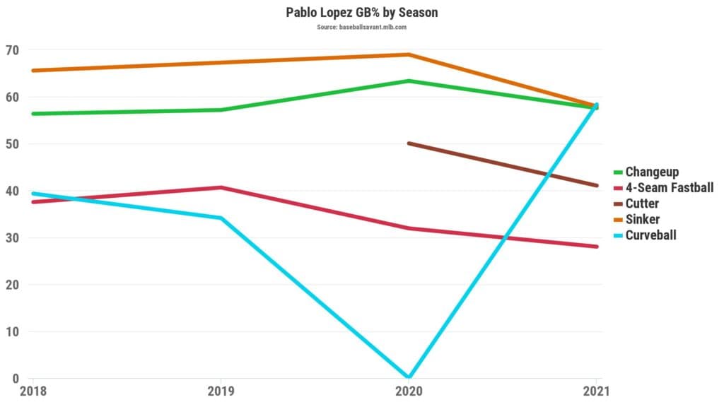 Admittedly, one of the few downsides to trading for Lopez is the fact he was plagued at times by home runs, particularly against his mid-90s four-seamer. After allowing just a pair of long balls in 2020, it surrendered five this past season – the most among all five of his pitches.