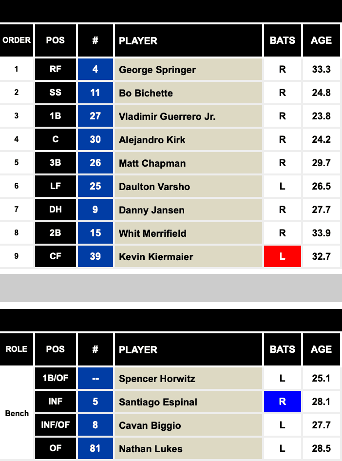 Fresh off an all-star appearance in 2022, Espinal looks to build off a season that was already fairly strong. He tailed off big time in the second half and may have lost his spot in the starting lineup to Whit Merrifield, but he can certainly play himself back into the starting 2B job. Espinal is pretty clearly the better of the two defensively, and so even average hitting will probably earn him the right to at least platoon with the left handed Cavan Biggio. His added power was touted in the first half, but it faded late in the year. Perhaps the toll of his first full MLB season got to him, and the offseason might help him regain some of that pop that found him in the ASG last year.