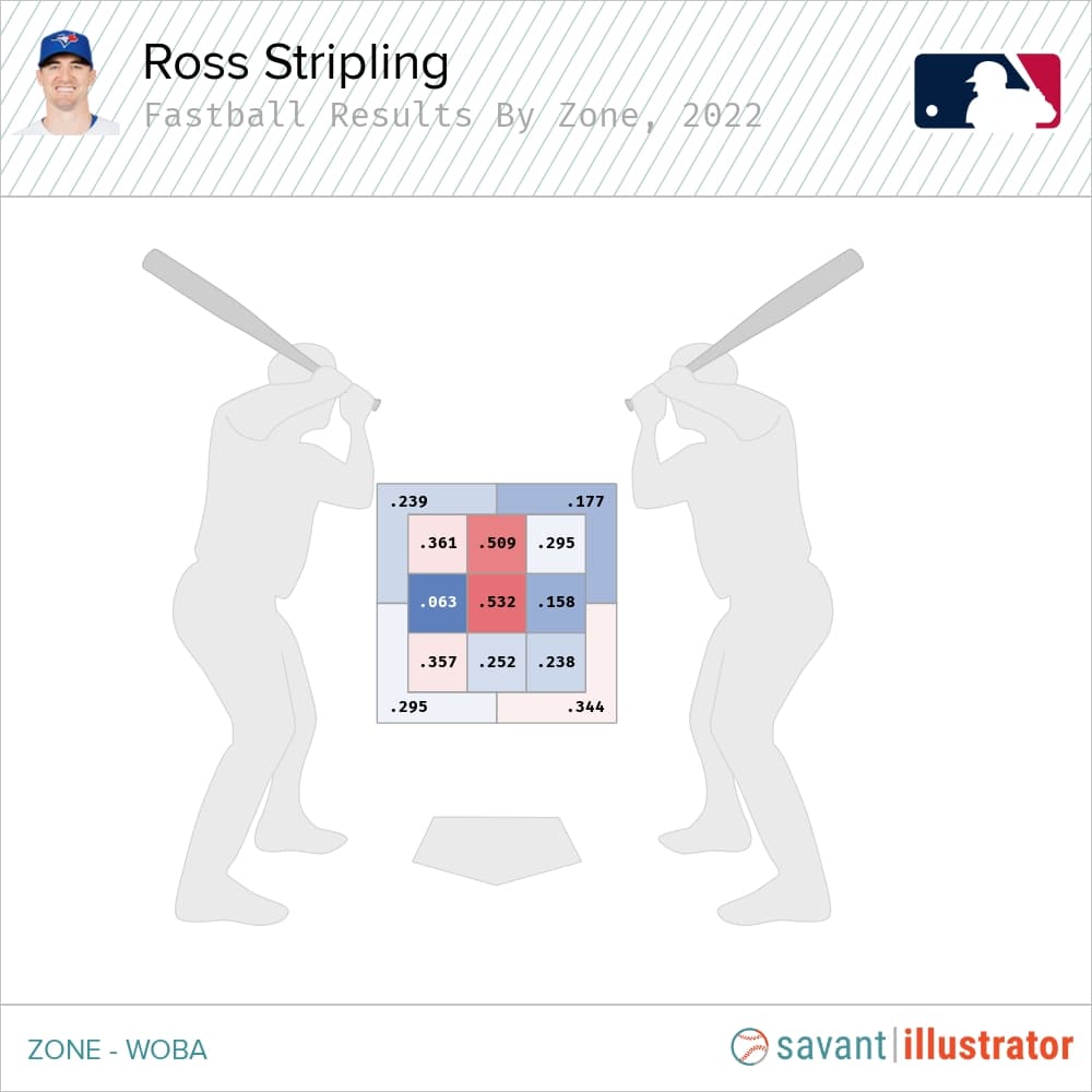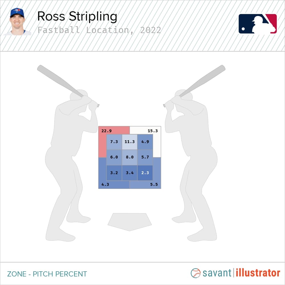 Now, Ross Stripling is a guy who continues to throw up in the zone. Here’s a look at his pitch chart in 2022…