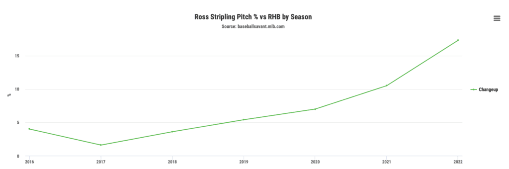 Stripling’s best pitch though, is his changeup. This year, he exponentially increased its usage against same handed batters, something he has steadily been doing since joining the Jays.