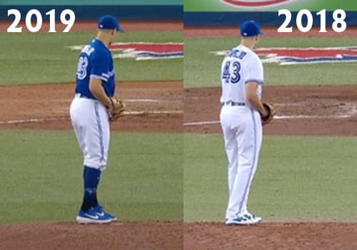 Exhibit C: Maybe he moved closer to the first base side of the pitching rubber? If anything, he’s facing a little more towards the third base side this year, angled further away from home plate, but aside from that, the differences are negligible.