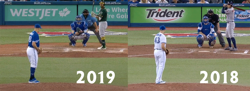 Exhibit A: His delivery to the mound from 2018 and this year. Basically, no difference.